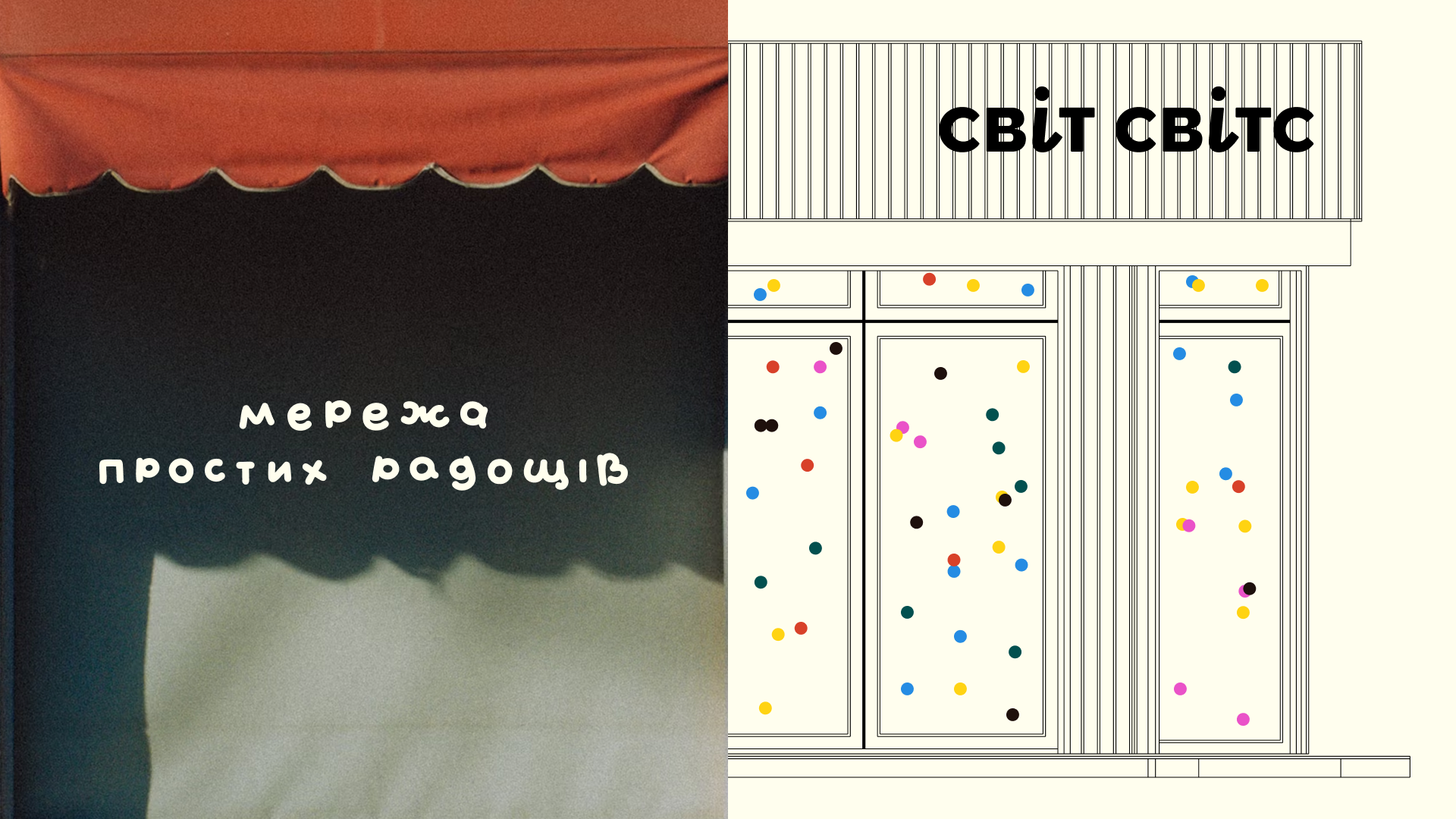 Для трансляції ідеї візуальною мовою ми шукали якийсь дуже простий спосіб передати радість, якусь таку звичайну річ, що втілює емоційне піднесення, тепло та єднання. Цією метафорою стало конфеті. Просте для дизайн системи, для відтворення, легко ідентифікується, як образ та розсипається в найбільш неочікуваних місцях.