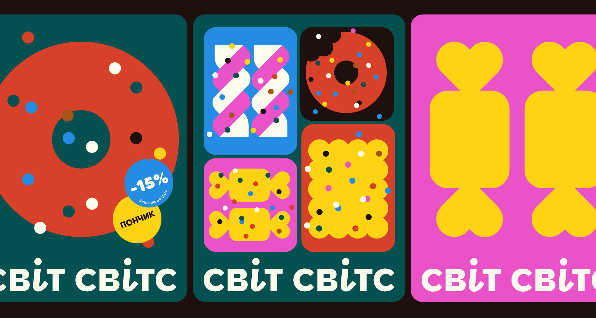 Для лого ми створили грайливий летерінг та додали жвавості за рахунок нахилених літер “і” з підігнутими хвостиками. Також підсолодили нашу солодку історію різними графічними пряниками, цукерочками, желейками та рукописним дескриптором “мережа простих радощів”. Порозкидали їх в айдентиці, як конфеті!